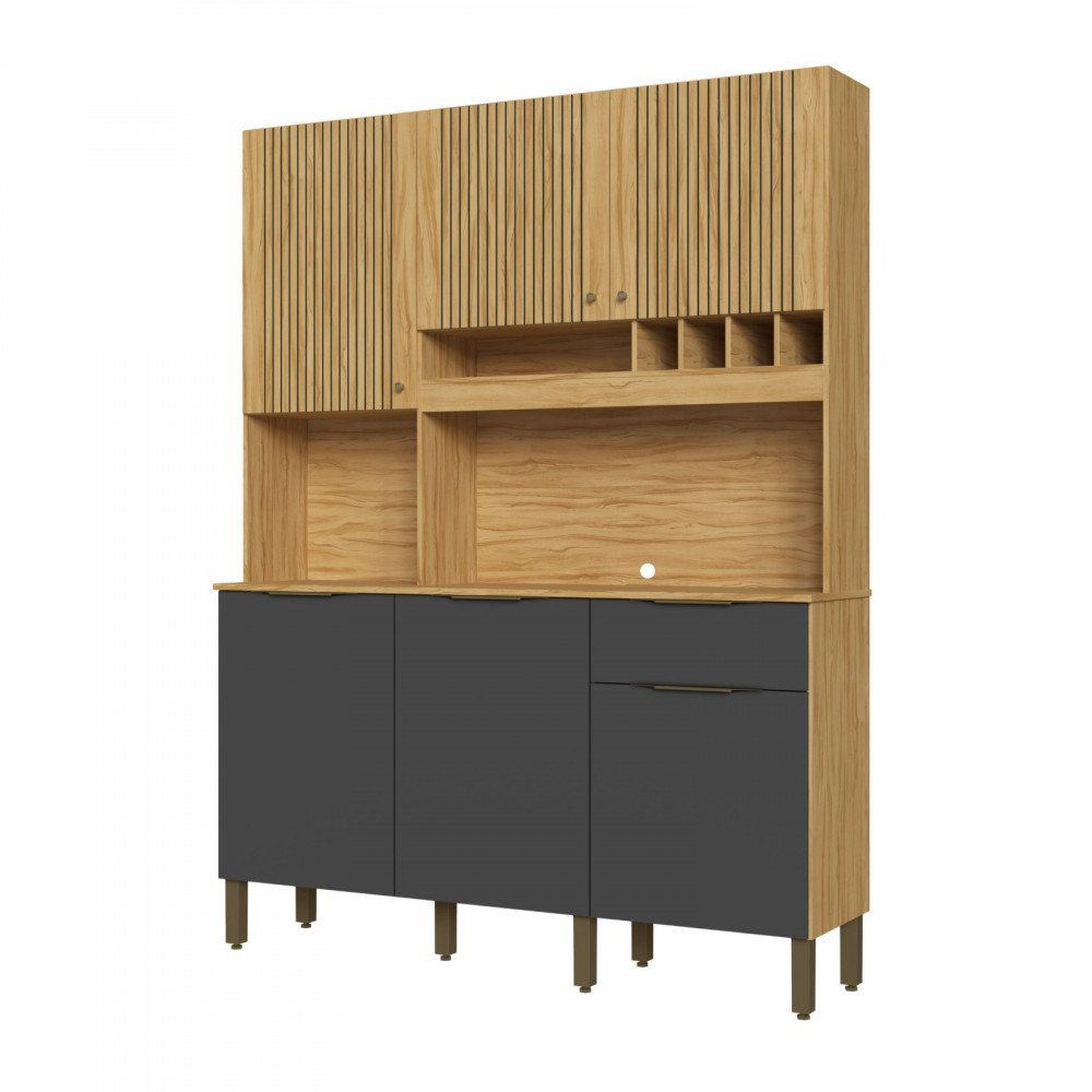 Armário de Cozinha Kit Cabernet Prime 100%MDF, Amendoa com Grafite - Ronipa